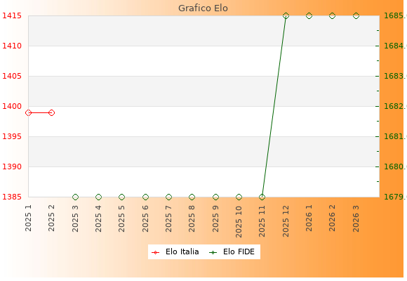 Elo FIDE: 1685    Migliore: 1685  (Marzo 2026)    Peggiore: 1679  (Marzo 2025)