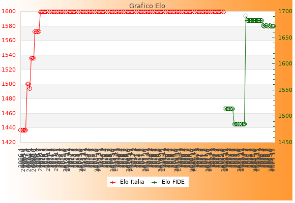 Elo FIDE: 1672    Migliore: 1691  (Marzo 2024)    Peggiore: 1485  (Giugno 2023)