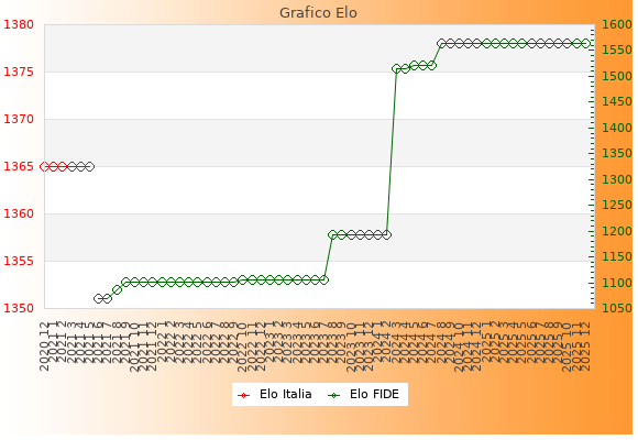 Elo FIDE: 1563    Migliore: 1563  (Dicembre 2025)    Peggiore: 1070  (Giugno 2021)
