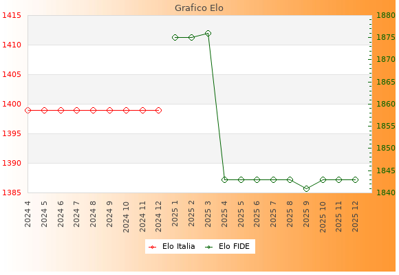 Elo FIDE: 1843    Migliore: 1876  (Marzo 2025)    Peggiore: 1841  (Settembre 2025)
