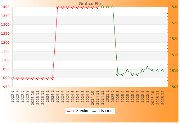 Elo FIDE: 1510    Migliore: 1530  (Febbraio 2025)    Peggiore: 1509  (Marzo 2025)