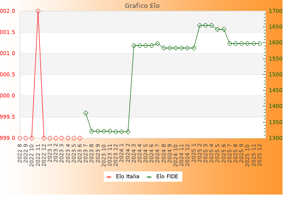 Elo FIDE: 1598    Migliore: 1655  (Aprile 2025)    Peggiore: 1320  (Dicembre 2023)