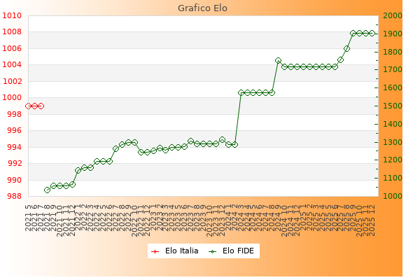 Elo FIDE: 1903    Migliore: 1903  (Dicembre 2025)    Peggiore: 1036  (Agosto 2021)