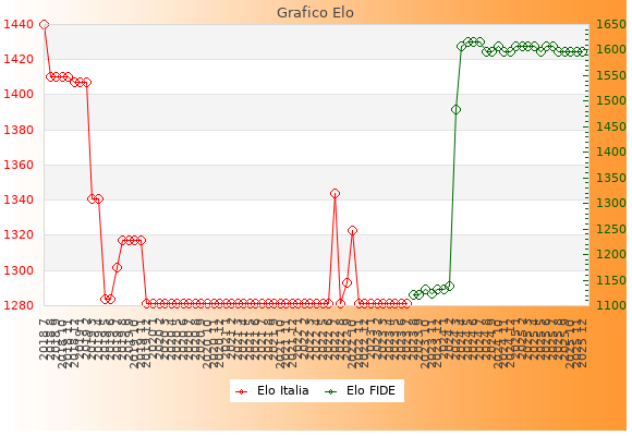 Elo FIDE: 1597    Migliore: 1615  (Luglio 2024)    Peggiore: 1122  (Agosto 2023)