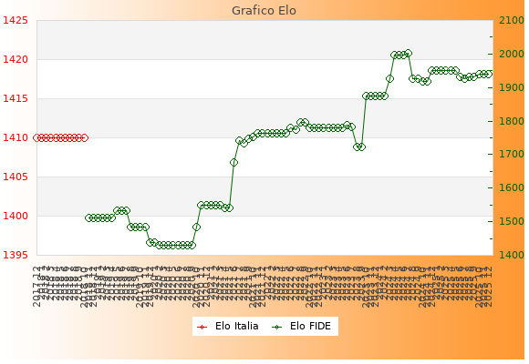 Elo FIDE: 1939    Migliore: 2001  (Luglio 2024)    Peggiore: 1430  (Febbraio 2020)