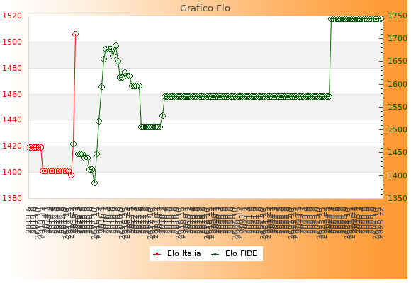 Elo FIDE: 1744    Migliore: 1744  (Dicembre 2025)    Peggiore: 1384  (Ottobre 2015)