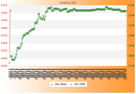 Elo FIDE: 2242    Migliore: 2286  (Settembre 2016)    Peggiore: 1757  (Settembre 2011)