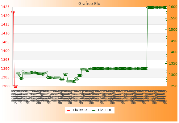 Elo FIDE: 1597    Migliore: 1597  (Dicembre 2025)    Peggiore: 1270  (Febbraio 2017)