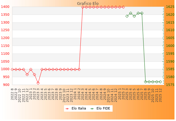 Elo FIDE: 1577    Migliore: 1621  (Luglio 2025)    Peggiore: 1577  (Agosto 2025)