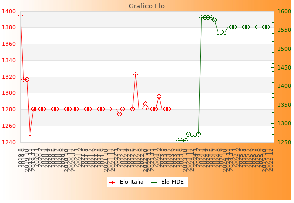 Elo FIDE: 1558    Migliore: 1584  (Giugno 2024)    Peggiore: 1255  (Agosto 2023)
