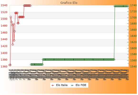 Elo FIDE: 1738    Migliore: 1738  (Dicembre 2025)    Peggiore: 1547  (Febbraio 2013)