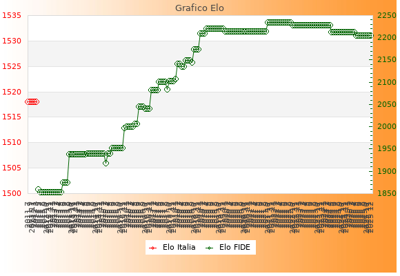 Elo FIDE: 2205    Migliore: 2234  (Settembre 2022)    Peggiore: 1853  (Luglio 2012)