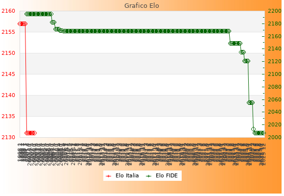 Elo FIDE: 2007    Migliore: 2195  (Luglio 2006)    Peggiore: 2007  (Aprile 2025)