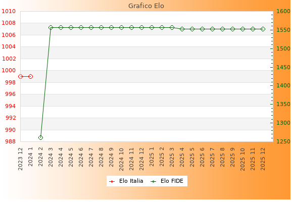 Elo FIDE: 1552    Migliore: 1557  (Marzo 2025)    Peggiore: 1261  (Febbraio 2024)