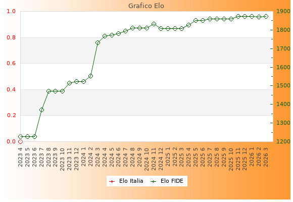 Elo FIDE: 1872    Migliore: 1873  (Gennaio 2026)    Peggiore: 1226  (Aprile 2023)