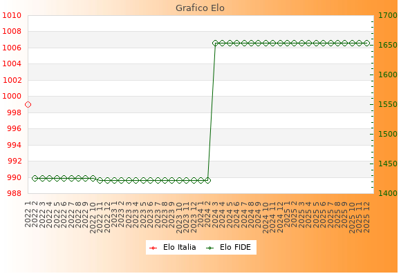 Elo FIDE: 1653    Migliore: 1653  (Dicembre 2025)    Peggiore: 1422  (Novembre 2022)