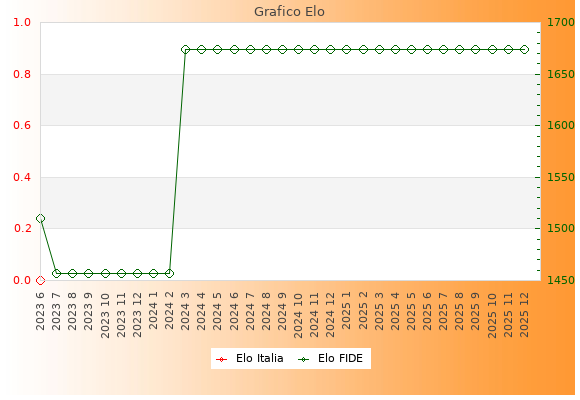 Elo FIDE: 1674    Migliore: 1674  (Dicembre 2025)    Peggiore: 1457  (Luglio 2023)
