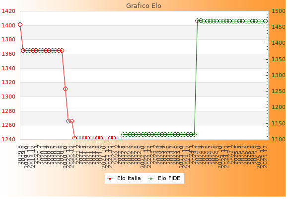 Elo FIDE: 1469    Migliore: 1470  (Aprile 2024)    Peggiore: 1116  (Aprile 2022)
