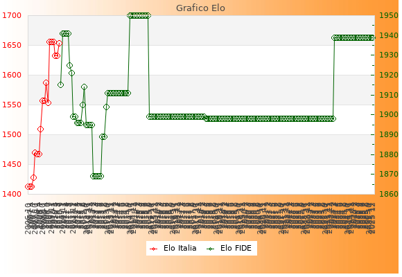 Elo FIDE: 1939    Migliore: 1950  (Agosto 2015)    Peggiore: 1869  (Febbraio 2013)