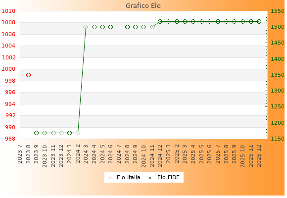 Elo Italia: 1524    Migliore: 1524  (Dicembre 2025)    Peggiore: 1524  (Luglio 2004)