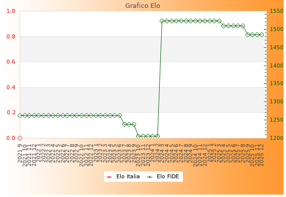 Elo FIDE: 1485    Migliore: 1523  (Marzo 2025)    Peggiore: 1205  (Ottobre 2023)