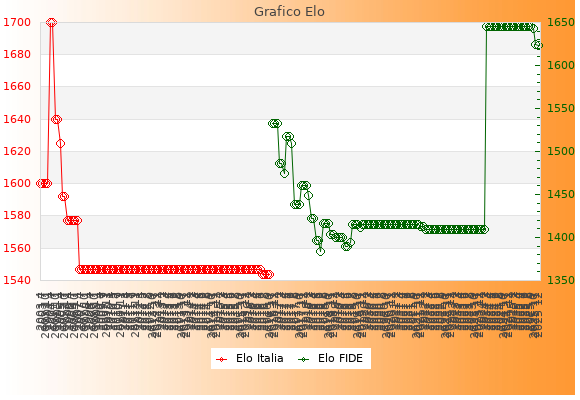 Elo Italia: 1407    Migliore: 1407  (Dicembre 2025)    Peggiore: 1398  (Gennaio 2005)