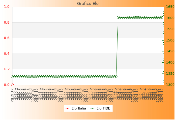Elo FIDE: 1602    Migliore: 1602  (Dicembre 2025)    Peggiore: 1337  (Dicembre 2019)