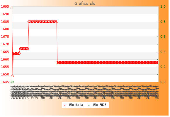 Elo FIDE: 1684    Migliore: 1684  (Dicembre 2025)    Peggiore: 1473  (Marzo 2017)