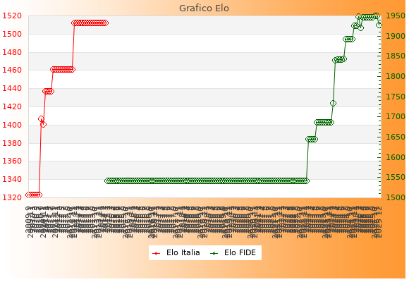Elo FIDE: 1927    Migliore: 1950  (Novembre 2025)    Peggiore: 1542  (Gennaio 2015)
