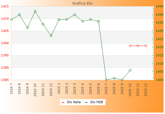 Elo Italia: 1399    Migliore: 1442  (Ottobre 2024)    Peggiore: 1400  (Luglio 2025)