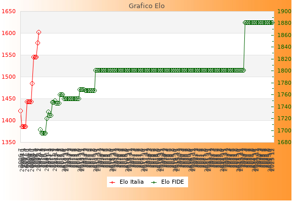 Elo Italia: 1399    Migliore: 1399  (Dicembre 2025)    Peggiore: 1371  (Aprile 2008)