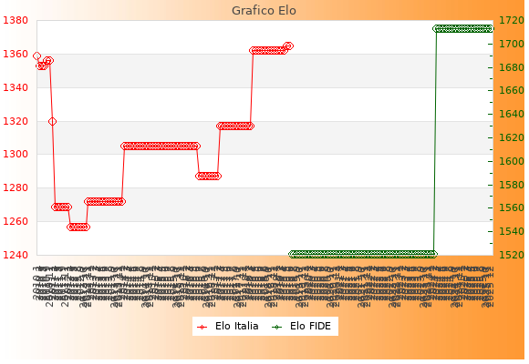 Elo FIDE: 1713    Migliore: 1713  (Dicembre 2025)    Peggiore: 1521  (Luglio 2019)