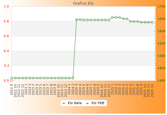 Elo FIDE: 1636    Migliore: 1656  (Marzo 2025)    Peggiore: 1410  (Settembre 2022)