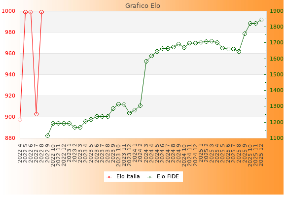 Elo FIDE: 1844    Migliore: 1844  (Dicembre 2025)    Peggiore: 1116  (Settembre 2022)