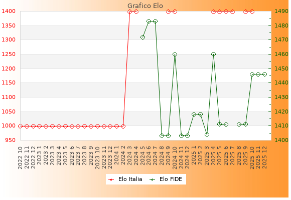 Elo FIDE: 1761    Migliore: 1761  (Dicembre 2025)    Peggiore: 1410  (Gennaio 2015)
