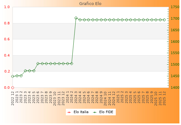 Elo FIDE: 1734    Migliore: 1734  (Dicembre 2025)    Peggiore: 1340  (Novembre 2014)