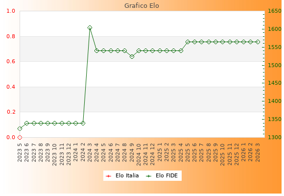 Elo FIDE: 1564    Migliore: 1604  (Marzo 2024)    Peggiore: 1325  (Maggio 2023)