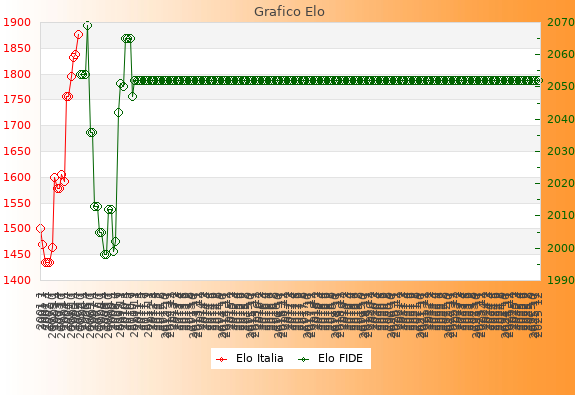 Elo FIDE: 1757    Migliore: 1757  (Dicembre 2025)    Peggiore: 1595  (Gennaio 2018)