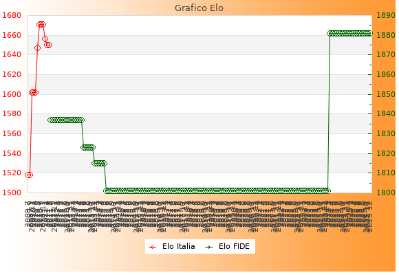 Elo Italia: 1580    Migliore: 1580  (Dicembre 2025)    Peggiore: 1500  (Luglio 2003)