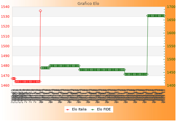 Elo Italia: 1428    Migliore: 1428  (Dicembre 2025)    Peggiore: 1428  (Aprile 2005)