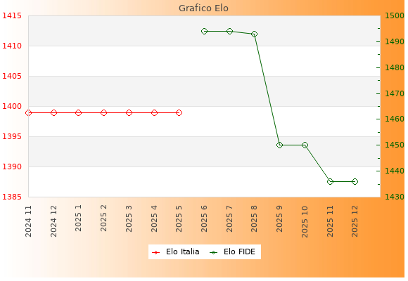 Elo FIDE: 1627    Migliore: 1627  (Dicembre 2025)    Peggiore: 1378  (Aprile 2018)
