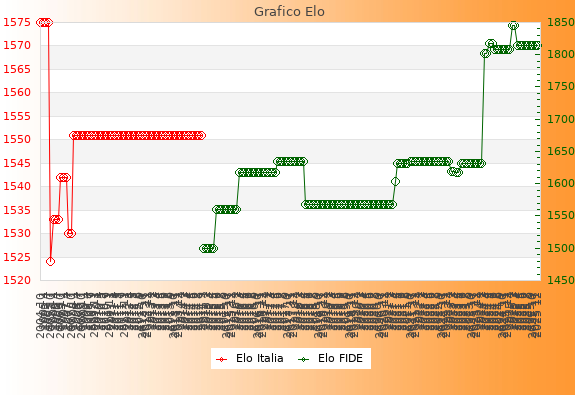 Elo FIDE: 1814    Migliore: 1845  (Marzo 2025)    Peggiore: 1499  (Gennaio 2015)