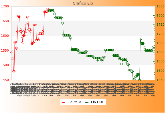 Elo FIDE: 1632    Migliore: 1826  (Marzo 2013)    Peggiore: 1450  (Febbraio 2024)