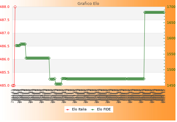 Elo FIDE: 1683    Migliore: 1683  (Dicembre 2025)    Peggiore: 1455  (Febbraio 2016)