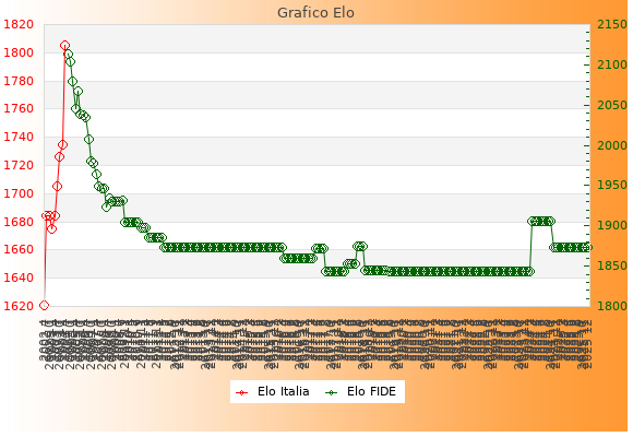 Elo FIDE: 1873    Migliore: 2113  (Luglio 2004)    Peggiore: 1843  (Agosto 2017)