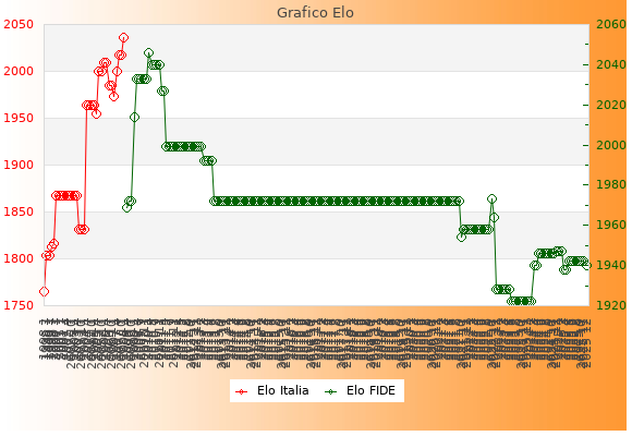 Elo FIDE: 1832    Migliore: 1894  (Aprile 2016)    Peggiore: 1738  (Marzo 2023)
