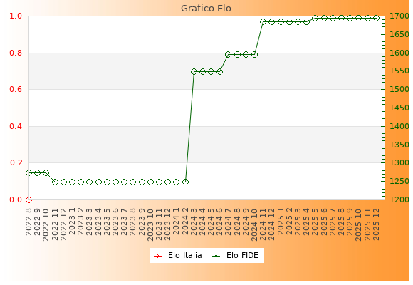 Elo FIDE: 1737    Migliore: 1737  (Dicembre 2025)    Peggiore: 1561  (Luglio 2015)