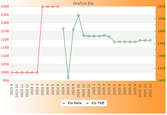Elo FIDE: 1465    Migliore: 1506  (Ottobre 2024)    Peggiore: 1404  (Agosto 2024)