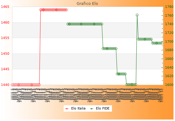 Elo FIDE: 1696    Migliore: 1761  (Marzo 2024)    Peggiore: 1601  (Giugno 2023)