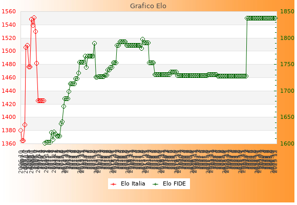 Elo Italia: 1655    Migliore: 1655  (Dicembre 2025)    Peggiore: 1537  (Gennaio 1998)